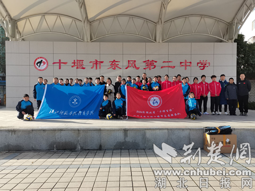 荊楚網(湖北日報網)訊(通訊員 劉家明)11月27日,湖北省“千師百校”體育支教行動之漢江師范學院體育學院“獻課捐物”活動在十堰市東風第二中學舉行。漢江師范學院體育學院院長肖嶸、副院長趙鵬等出席捐贈儀式,東風第二中學副校長唐玲、王金濤等代表實習基地學校接受捐贈。
