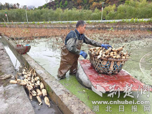 荊楚網(湖北日報網)訊(通訊員 崔馨)“蓮藕一定要吃剛挖的才脆甜!”11月28日筆者看到,在十堰市鄖西縣關防鄉藕魚螺生態種植基地里,藕農從水里撈出一個白胖的蓮藕,豐收的喜悅溢于言表。岸邊,專業合作社負責人盧從信在指揮藕農勞作。他說:“今年的藕產量特別好,藕又大又白,品質非常不錯,我們每天都能收到訂單,市場供不應求。”