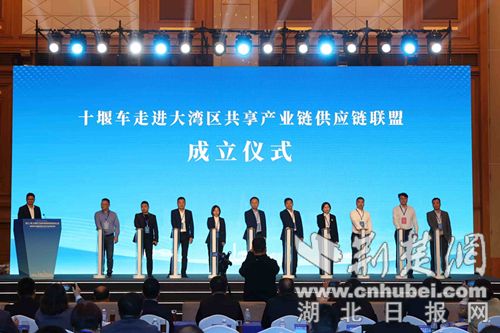 “車鏈大灣區 共贏新賽道”。新能源與智能網聯汽車產業對接活動,邀請中國電動汽車百人會、廣汽日野汽車有限公司、東風商用車有限公司、湖北三環汽車有限公司、深圳東風(十堰)汽車有限公司、城市之光(深圳)無人駕駛有限公司等行業專家、企業負責人,分別作了市場分析、項目和產品推介,舉行了十堰車走進大灣區共享產業鏈供應鏈聯盟成立儀式。