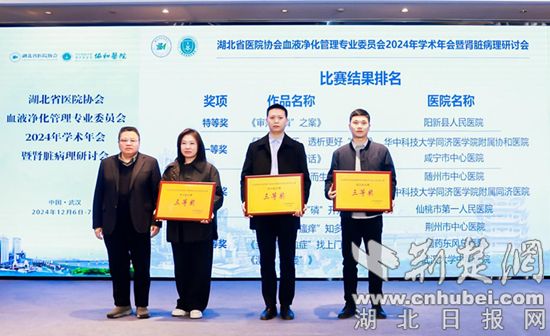 荊楚網(湖北日報網)訊(通訊員 張賢慧 瞿靜)12月6日,由湖北省醫院協會血液凈化管理專業委員會主辦的血液透析并發癥管理宣教比賽暨2024年湖北省天使風采大賽決賽在武漢圓滿落幕,國藥東風總醫院腎臟內科團隊選送的作品——《當“高鉀血癥”找上門》榮獲三等獎。