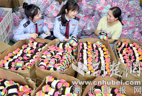 稅務干部了解襪業生產出口銷售情況。通訊員 供圖