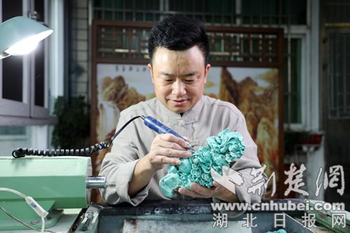 綠松石加工現(xiàn)場。通訊員 供圖