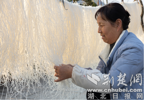 荊楚網(wǎng)(湖北日?qǐng)?bào)網(wǎng))訊(通訊員 鄒景根、高玲、紀(jì)德濤)“春種紅薯秋打芡,寒冬臘月漏粉條”。寒冬時(shí)節(jié),湖北省十堰市鄖西縣鄉(xiāng)村的房前屋后,一排排傳統(tǒng)手工制作的紅薯粉條在暖陽(yáng)的照射下晶瑩剔透,馥郁飄香,成為冬日里一道靚麗的風(fēng)景。