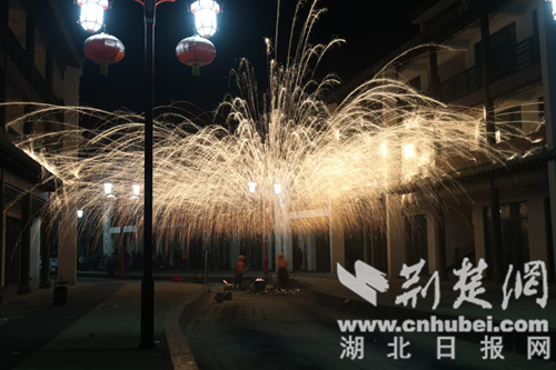 民間藝人表演非遺“打鐵花”。通訊員 供圖
