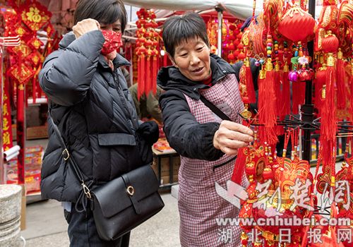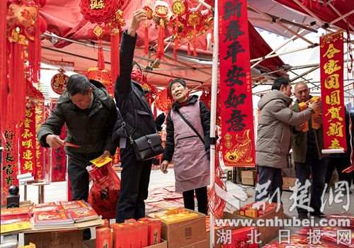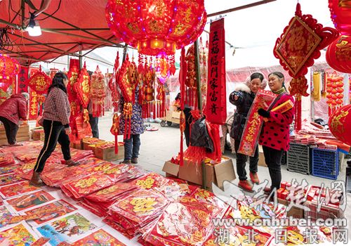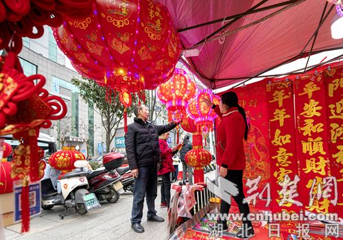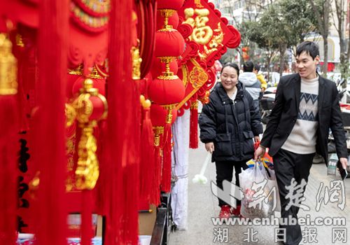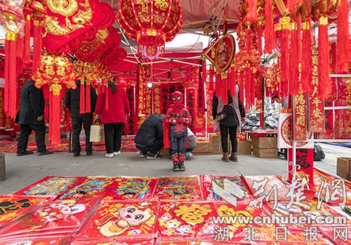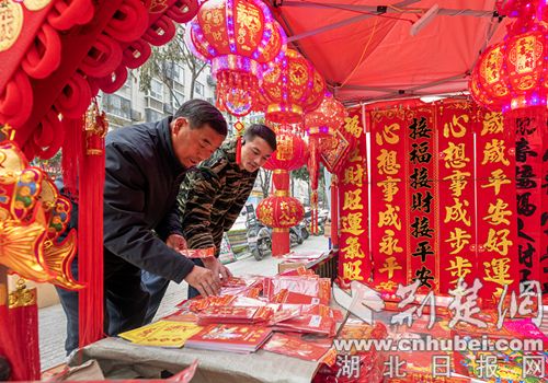 荊楚網(wǎng)(湖北日?qǐng)?bào)網(wǎng))訊(通訊員 范學(xué)勇)春節(jié)臨近,年味漸濃。元月18日,在竹山縣城關(guān)鎮(zhèn)人民路文化市場(chǎng),春聯(lián)、燈籠、年畫、福字、中國(guó)結(jié)及各式各樣的節(jié)日飾品把街頭裝妝得喜氣洋洋,讓人目不暇接。