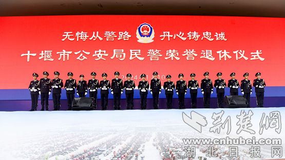 2024年1月10日,一場莊嚴而儉樸的榮譽退休儀式,在十堰市警察警訓基地舉行,這些剛剛退休的同志重回警營,他們與部分退休干部一道,受邀接受市公安局全體黨委成員頒授的光榮退休榮譽牌,參觀執法辦案管理中心,感受法治公安建設成果。