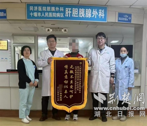 術后第二天,毛先生就能下床活動。經過一段時間的康復治療,他的體重逐漸增加,精神狀態飽滿。當毛先生得知可以出院回家時,激動之情溢于言表,特意送來錦旗表達對十堰人醫肝膽胰腺外科專家團隊的感激。