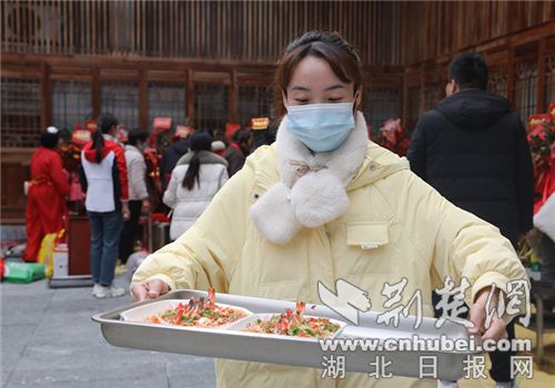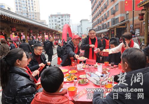 “開席啰!上合碗啰!”在“知客”吆喝聲中,熱鬧的百家宴正式開席。象征和和美美的竹山合碗、寓意大吉大利的竹山大雞、取意年年有余的香煎大白魚、預示牛氣沖天的鄖巴黃牛……一道道具有地方特色又充滿美好寓意的的美食陸續(xù)擺滿了餐桌,從清爽可口的特色涼菜,到令人垂涎的經典熱菜,從造型別致的創(chuàng)意面點,到色彩繽紛的果蔬拼盤,滿桌佳肴讓市民們在其樂融融中大快朵頤。