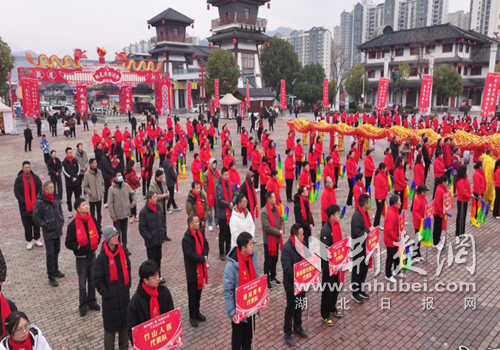 啟動儀式上,精彩的展示展演活動接踵而至。《龍騰盛世》舞龍展演里,巨龍在隊員們的舞動下蜿蜒前行,氣勢磅礴,展現出蓬勃的生機與活力;《群獅獻瑞》舞獅展演中,舞獅隊員們身手矯健,獅子活靈活現,時而跳躍,時而翻騰,寓意著新的一年吉祥如意;《鼓韻桃花源》腰鼓展演,隊員們身著鮮艷服飾,腰鼓聲響徹廣場,洋溢著濃濃的新年喜慶氛圍;彩綢廣場舞展演《張燈結彩》《幸福節拍》,舞者們手持彩綢,翩翩起舞,彩綢飛揚間滿是幸福的味道;武當九式太極拳展演則以其剛柔并濟的動作,展現出中華傳統武術的獨特魅力,一招一式盡顯悠然韻味。這些精彩的展演不僅為觀眾帶來了視覺盛宴,更傳遞出新年的美好祝福。