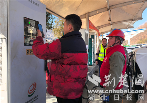 荊楚網(湖北日報網)訊(通訊員 華樂微)1月30日,十堰鮑峽服務區充電站一片繁忙景象,不少走親訪友的新能源車主利用休息時間正在這里“加油”,國網十堰供電公司開發區供電中心黃龍供電所黨員服務隊隊員王正洲和夏敏則忙著對充電樁進行維護。