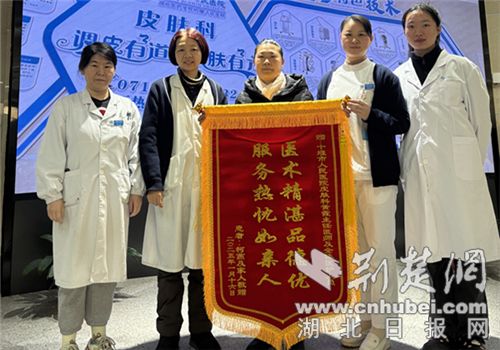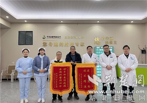 荊楚網(wǎng)(湖北日?qǐng)?bào)網(wǎng))訊(通訊員 馬婷婷)近日,十堰市人民醫(yī)院皮膚科門(mén)診、病房和院外醫(yī)療點(diǎn)各收獲一面錦旗,迎來(lái)了特殊的“開(kāi)門(mén)紅”。這三面錦旗不僅承載著患者的感激之情,更是對(duì)皮膚科醫(yī)療團(tuán)隊(duì)專業(yè)能力與服務(wù)質(zhì)量的充分肯定。從門(mén)診到病房,從院內(nèi)到院外,十堰人醫(yī)皮膚科用精湛的醫(yī)術(shù)和貼心的服務(wù),展現(xiàn)了“全面開(kāi)花”的醫(yī)療服務(wù)新氣象。