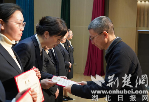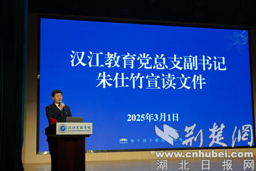 漢江教育黨總支副書記朱仕竹宣讀文件。 通訊員 供圖