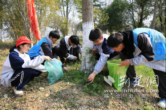 活動當天,學校組織七(11)中隊全體成員徒步近3公里,來到漢江河右岸沙石公園,對沙石公園及河邊的花草樹木進行拔草、澆水、撿拾垃圾等守水護水環保活動。