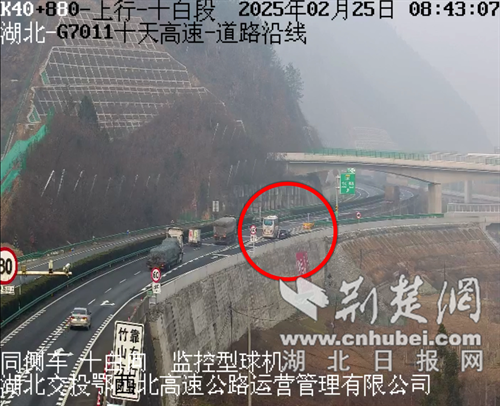 2月25日上午8時40分許,一輛牌照為鄂C1***8的黑色SUV沿G7011十天高速十白段十白向行駛,行至轉鄖巫高速匝道實線路段時,駕駛員殷某在未打轉向燈的情況下突然變道,并直接將車輛停在匝道上。后方一輛客車緊急減速,同時打方向避讓該車。這一幕險象環生,一旦追尾,極有可能造成人員傷亡。