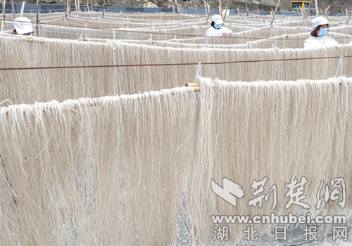 鄖西縣羊尾鎮(zhèn)付家溝村傳統(tǒng)工藝制作的紅薯粉條。通訊員 鄒景根 攝
