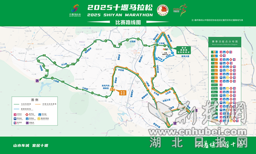 全體選手從奧體中心出發,自熊家灣立交橋下左轉上北京路行至十堰博物館路段,健康跑選手左轉上京東路、延安路,沿紫霄大道返回奧體中心終點,全馬半馬選手繼續沿北京中路、大學城、重慶路、上海路、車城南路抵達東風汽車博物館,半馬選手在此沖線;全馬選手沿車城南路繼續右轉前行上三峽路,穿越牛頭山森林公園,經車城西路、原東風總部、人民公園,由人民路左轉江蘇路返回奧體中心終點。這條賽道串聯起十堰生態、工業、科教、商業等元素,見證著城市變遷與發展,鐫刻著城市的歷史記憶和精神印記,彰顯著十堰城市的熱情和自信,體現了“每一眼都是風景、每一步都有故事”的辦賽初心。