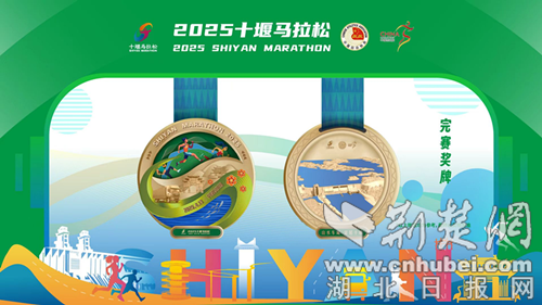 堰馬的完賽獎牌以綠葉為外形,凸顯美麗十堰“綠水青山”的生態特質,將武當山的雄偉壯闊、丹江口水庫的碧波萬頃、東風汽車的大氣威武融為一體,以十堰市花石榴花簇擁太極八卦紋路,表達十堰團結奮進的城市精神和悠久厚重的文化底蘊,獎牌獨具匠心,具有較高的審美價值和收藏價值,將成為每位參賽者喜歡的“十堰印記”。