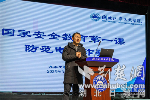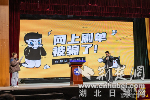 荊楚網(wǎng)(湖北日報網(wǎng))訊(通訊員 王裕)3月16日晚,湖北汽車工業(yè)學(xué)院大禮堂內(nèi)掌聲與驚呼聲交織,一場融合刑偵實戰(zhàn)與青春創(chuàng)意的“反電信詐騙 享安全校園”主題晚會在此上演。轄區(qū)派出所、學(xué)工部、保衛(wèi)處、與汽車工程學(xué)院師生聯(lián)動,通過情景還原、數(shù)據(jù)解剖、AI技術(shù)演示等創(chuàng)新形式,為2024級新生打造了一堂“聽得進、記得住、傳得開”的反詐必修課。中區(qū)派出所警官韋子永,學(xué)校保衛(wèi)處處長楊長春,學(xué)工部部長王關(guān)鋒、副部長杜昕俊,汽車工程學(xué)院黨委副書記周彬以及學(xué)院輔導(dǎo)員和2024級全體學(xué)生共同參與。