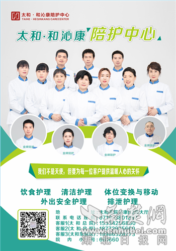 在傳統住院模式下,患者家屬常因陪護問題疲于奔波,影響正常生活與工作。早在2016年,太和醫院率先在全市成立專業陪護中心——太和·和沁康陪護中心,為住院患者提供全程無陪護服務。目前已經形成了一支專業高效、溫暖可靠的陪護團隊,為住院患者提供生活照料、康復支持、心理關懷等全方位服務,讓患者家屬從陪護壓力中徹底“解放”,安心回歸工作與生活。