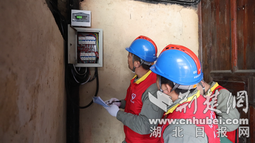 服務隊隊員在開展安全用電檢查。通訊員 供圖