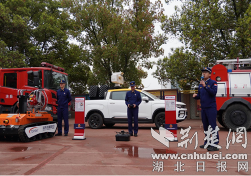 在特種裝備秀中,同學們觀看消防機器人演示高科技如何助力救援,近距離接觸智能消防車,了解科技助力幸福生活的重要性。