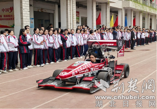在極速賽車場展區,由湖北汽車工業學院師生帶來的F1科創賽車,帶領學生們感受自制賽車的速度與激情。