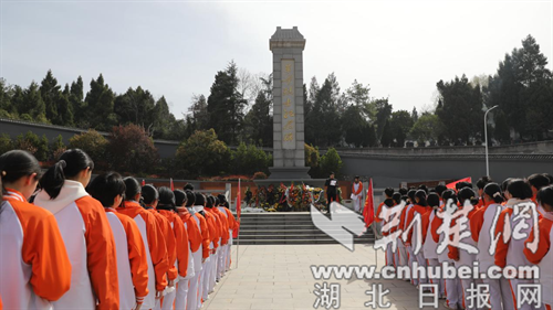 在烈士紀念碑前,師生集體向烈士默哀三分鐘,學校相關領導向師生們介紹了從紅軍革命時期到抗日戰爭時期,在這片沃土上犧牲的革命先烈的感人事跡,以及建市以來丹江口經濟社會所取得的發展和進步。在莊嚴的《鮮花曲》樂聲中,學生們依次走到烈士墓前,恭敬地獻上鮮花,表達對先烈們的深切哀思。
