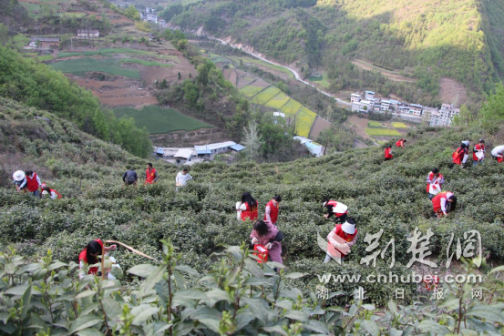 荊楚網(湖北日報網)訊(通訊員張曉靜)四月春意盎然,茶園吐綠,正是采茶時節。鄖西縣羊尾鎮組織全鎮30余名青年干部前往轄區大院村七組香鋪茶園開展茶葉采收實踐活動,助力茶農搶抓春茶上市“鮮”機。