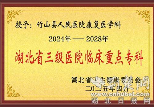 荊楚網(wǎng)(湖北日?qǐng)?bào)網(wǎng))訊(通訊員 范學(xué)勇)4月7日,從湖北省衛(wèi)健委傳來(lái)好消息:竹山縣人民醫(yī)院康復(fù)醫(yī)學(xué)科成功獲評(píng)湖北省三級(jí)醫(yī)院臨床重點(diǎn)專(zhuān)科。這不僅是竹山縣人民醫(yī)院康復(fù)醫(yī)學(xué)科發(fā)展歷程中的重要里程碑,更是竹山縣醫(yī)療領(lǐng)域的歷史性突破,標(biāo)志著竹山縣首個(gè)三級(jí)醫(yī)院省級(jí)臨床重點(diǎn)專(zhuān)科誕生。