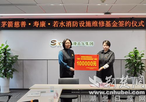 荊楚網(湖北日報網)訊(通訊員 易維)4月11日,十堰市茅箭區“壽康·若水消防設施維修基金”簽約暨捐贈儀式在湖北壽康永樂商貿集團有限公司總部舉行。茅箭區消防救援大隊、區民政局、區應急管理局相關負責人,壽康永樂集團副總裁任晶、總工程師寇華勝等出席活動,共同見證這一公益善舉。