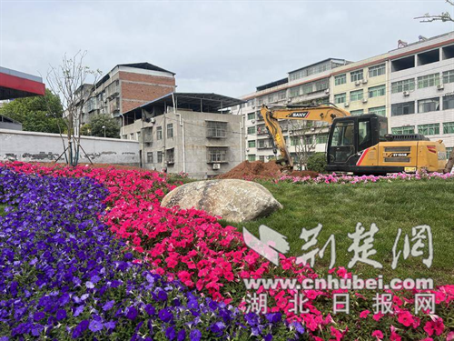 鄖西縣發展大道正在建設的“口袋公園”。通訊員 孟瑩 攝