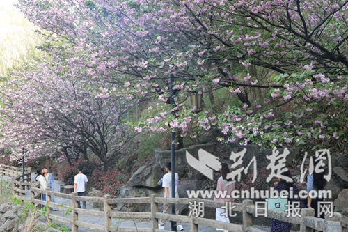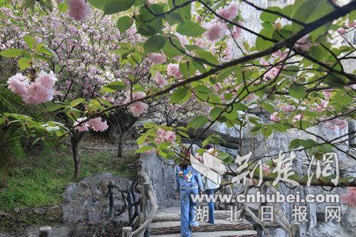 鄖西縣櫻花谷景區(qū)櫻花盛開游人如潮。通訊員 鄒景根 攝