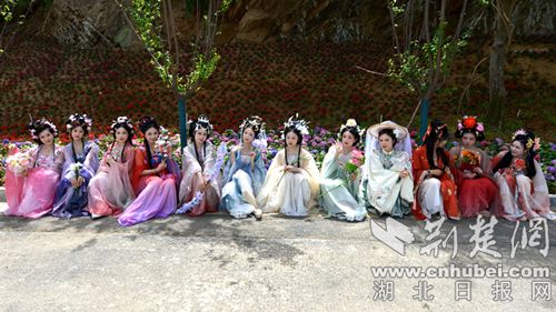 在鮮花小鎮(zhèn)的十星廣場、環(huán)湖游步道、圣水湖景區(qū)等景區(qū)和小景點內(nèi),數(shù)萬朵月季、芍藥競相綻放,整個集鎮(zhèn)籠罩在花的海洋中,風(fēng)景美不勝收。萬株鮮花主題花卉展,大型文化巡游、上庸?jié)L龍等非遺表演使得上萬名游客流連忘返;特色打卡點和“十二花神”互動拍照打卡,漆扇、插花、花手鏈、手繪等讓游客全新體驗;《黃州點子》《上庸?jié)L龍》等非物質(zhì)文化遺產(chǎn)表演無不讓游客驚嘆,30余處花海景觀成為賞花拍照打卡點。