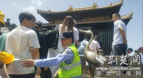 “五一”假期,武當(dāng)山景區(qū)內(nèi)外人頭攢動,來自五湖四海的游客在此安心游玩。和諧美景背后,像譚運璐一樣奔忙堅守、暖心為民的民警輔警還有很多,共繪巍巍武當(dāng)山的平安“警”色。