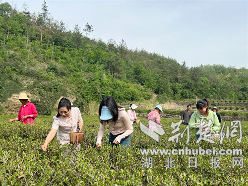 春夏交替之際,鄖西縣安家鄉神霧嶺茶園里嫩綠的茶樹層層疊疊,宛如一片綠色的海洋,彌漫著淡淡的茶香。
