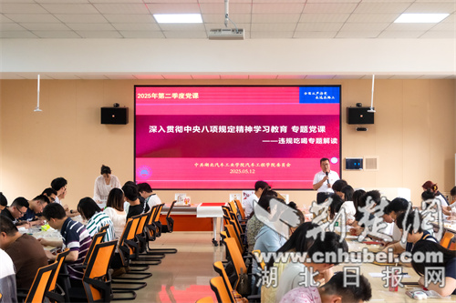 汽車工程學院黨委書記楊亞會圍繞“違規吃喝”講授專題黨課。通訊員 供圖
