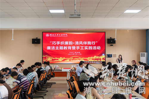 荊楚網(湖北日報網)訊(通訊員 曹閃閃 周彬 張佳麒)當指尖藝術與廉潔文化相遇,會激蕩出怎樣的清風正氣?5月12日,汽車工程學院舉辦“巧手織廉韻,清風伴我行”廉潔主題教育手工實踐活動。校黨委副書記、紀委書記、監察專員陳建平,校紀委副書記孫峰蒞臨活動現場作指導,學院全體師生黨員及部分家屬積極參與,活動由學院黨委副書記周彬主持。