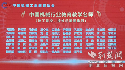 荊楚網(湖北日報網)訊(通訊員 石鑫澤)5月16至18日,中國機械工業教育協會第六屆一次會員大會暨第六屆一次理事會在揚州舉行。會上公布了“中國機械行業教育先進集體”“中國機械行業教育教學名師”“中國機械行業教育先進工作者”名單,湖北東風汽車技師學院入選“中國機械行業教育先進集體”。教師楊斌雨、聞明入選“中國機械行業教育教學名師”,張小力入選“中國機械行業教育先進工作者”。