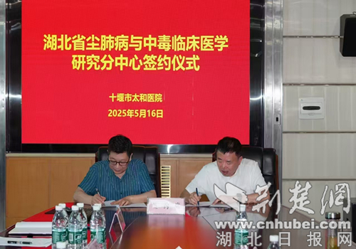 荊楚網(湖北日報網)訊(通訊員 張正梁)5 月16日,十堰市太和醫院舉辦了湖北省塵肺病與中毒臨床醫學研究分中心簽約授牌儀式,標志著湖北省塵肺病與中毒臨床醫學研究分中心正式落戶十堰市太和醫院。