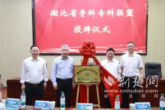 武漢協和醫院骨科醫院主任楊操,武漢協和醫院骨科醫院黨總支部書記李進,十堰市衛健委黨組成員、副主任嚴彬,十堰市人民醫院院長孫澤群共同揭牌。 通訊員 供圖