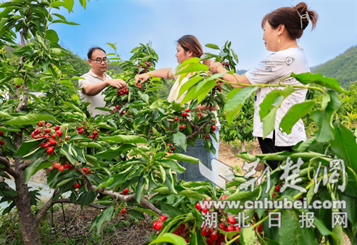 萬綠叢中點點紅,玲瓏剔透美嬌容。時下,在鄖西縣觀音鎮縣溝村車厘子采摘園,一股馥郁的果香撲面而來,一顆顆如紅瑪瑙般的車厘子掩映在翠綠的枝葉間,令人垂涎欲滴,吸引許多游客前來采摘,體驗別樣農趣。