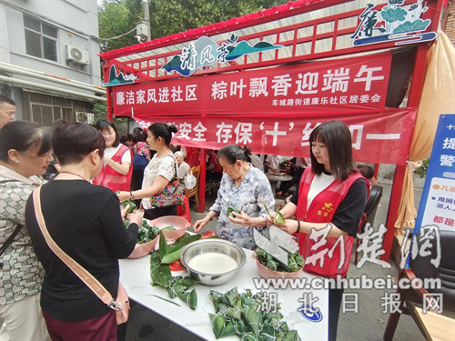 荊楚網(湖北日報網)訊(通訊員 胡俊濤 瞿義嘉)端午近,粽香飄,又是一年端午到。為進一步弘揚中華民族傳統文化,營造歡樂祥和、清廉的端午氛圍。5月27日,十堰市張灣區車城路街道康樂社區聯合太和醫院康復科在轄區汽運處小區廉潔亭內組織開展“廉潔家風進社區 粽葉飄香迎端午”活動。