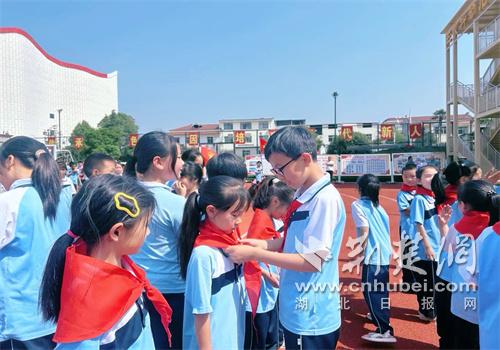 在歡快的音樂聲中,高年級優秀少先隊員們手捧鮮艷的紅領巾,為新隊員們一一佩戴。當紅領巾在新隊員胸前飄揚的那一刻,他們的臉上洋溢著自豪與喜悅。新隊員們在隊旗下莊嚴宣誓,響亮的誓言表達了他們對黨的忠誠、對祖國的熱愛以及努力學習、報效祖國的決心。