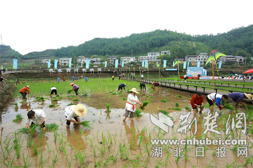 荊楚網(wǎng)(湖北日報網(wǎng))訊(通訊員 陳昌榮 全麗)6月2日,細雨輕灑,秧苗青青。竹山縣擂鼓鎮(zhèn)西河村稻田廣場熱鬧非凡,由擂鼓鎮(zhèn)西河村村民委員會、西河村投資有限公司主辦的“我在西河有塊田”農(nóng)民插秧比賽暨稻田認領簽約儀式火熱開場。