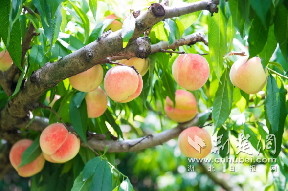 荊楚網(湖北日報網)訊(通訊員李瑞 吳華麗)近日,在鄖西縣城關鎮天河坪懸鼓山桃園內,桃香與歡笑聲交織,百余名市民游客在此體驗采摘樂趣,感受田園野趣。果農李建明一邊向游客分發采摘籃,一邊高興地說:“今年桃子長勢喜人,每天能接待上百位游客。”