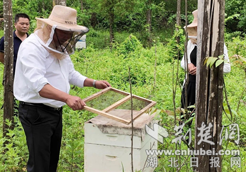 “三官洞林區的自然環境非常適合中華蜜蜂的生長,我們初次選址定在了馬家溝,目前放了100多箱蜜蜂。經過一個多月的反復檢查,蜜蜂生長得非常不錯,產糖率也比較高。”鄖西縣洪源蜜蜂有限公司負責人柯林一邊說道,一邊仔細查看蜜蜂長勢。