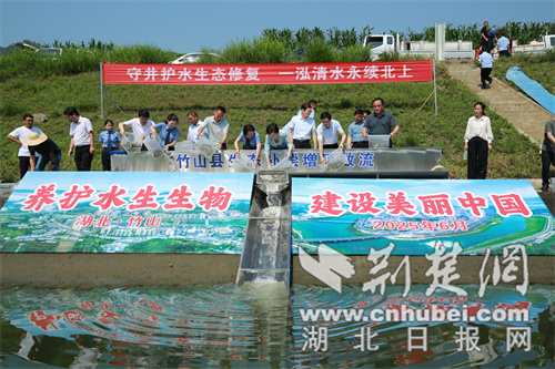荊楚網(湖北日報網)訊(通訊員 陳昌榮 張鵬 王駕馭)為進一步維護水生生物多樣性,改善天然水域生態環境,6月12日,竹山縣政府辦、縣檢察院、縣圣水湖管理局、縣農業農村局等八部門在堵河流域(小漩、圣水湖庫區)開展“養護水生生物,建設美麗中國”生態環境損害補償增殖放流活動。
