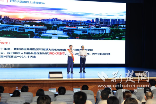 宣講活動中,5位2025年全國先進工作者的動人事跡,讓線上線下聆聽宣講的師生,深受教育和感動。《扎根紡織強國路 甘織經緯繡宏圖》展現了武漢紡織大學梅順齊教授30多年來扎根紡織,攻克行業技術難題,把“經緯線”織成“強國路”的匠心精神;《脊梁》情景再現了華中科技大學陳學東院士團隊科研攻關場景,他們始終面向國家重大需求,用三十年磨一劍破解多項系統技術難題,讓中國裝備挺起脊梁;《醫海泛舟護健康 向新而行再奮進》展現了湖北醫藥學院唐以軍教授潛心做學問、匠心干事業、仁心惠民生的醫者初心故事;《扎根科研三十載 匠心育人守初心》講述了湖北大學陳守文教授深耕微生物領域,帶領團隊走在國際科研前沿,用科研匠心和企業情懷書寫時代答卷的擔當故事;《攀登》情景再現了中國地質大學(武漢)謝樹成院士扎根地質微生物學,以地質為尺,解鎖自然密碼,用腳步勇攀科學高峰的勇氣故事。