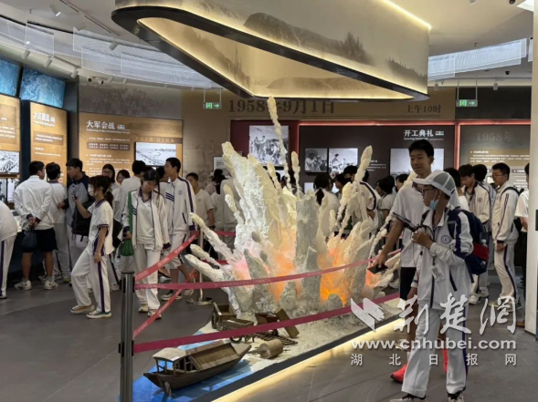 師生們開(kāi)啟了一場(chǎng)跨越時(shí)空的“水脈之旅”。丹江口工程展覽館內(nèi),泛黃的工程文件、建設(shè)者用過(guò)的工具、移民搬遷時(shí)的老照片等文物,串聯(lián)起工程從1952年構(gòu)想提出到2014年通水的62年奮斗史。當(dāng)看到“38.4萬(wàn)庫(kù)區(qū)移民舍家為國(guó)”時(shí),初二學(xué)生張同學(xué)感慨:“課本上的國(guó)家工程,原來(lái)承載著這么多家庭的犧牲與奉獻(xiàn)。”