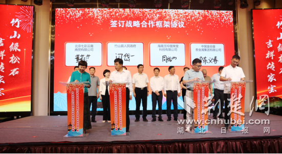 儲量戰略合作協議,竹山縣與七彩云南、玉玲瓏珠寶、萃華等國內知名珠寶企業簽訂關于開展竹山綠松石產品設計、精深加工、市場開拓、品牌營銷等戰略合作框架協議,協議總金額10億元;竹山縣興竹綠松石投資開發有限公司與澳門珠寶集團有限公司、深圳市大河商貿有限公司等8家企業簽訂綠松石產品供應和商業合作協議,協議總金額10億元。